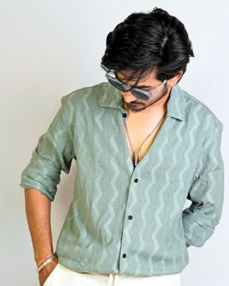 Pastel Mint Green – Zigzag Stripes | Textured Shirt