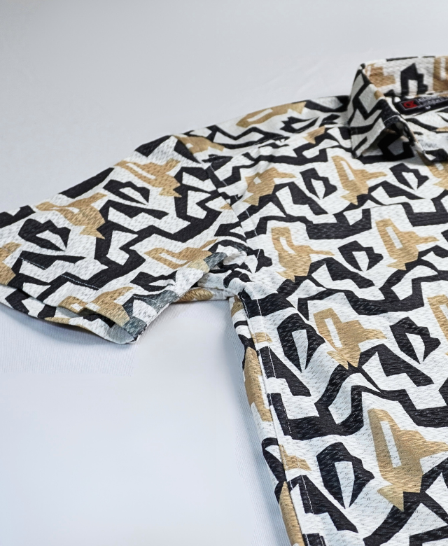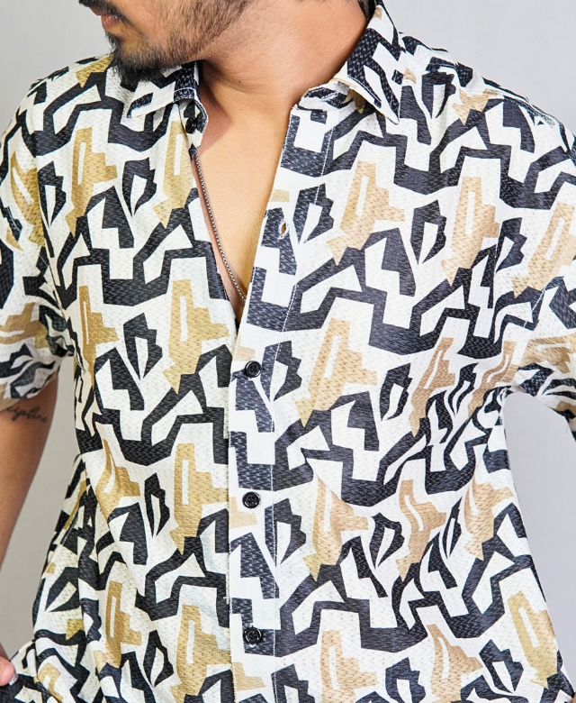 The refreshing beige color brings vibrancy to your wardrobe, while the retro abstract pattern adds a fun and artistic touch. It’s the perfect shirt for anyone who loves playful style with a vintage twist.