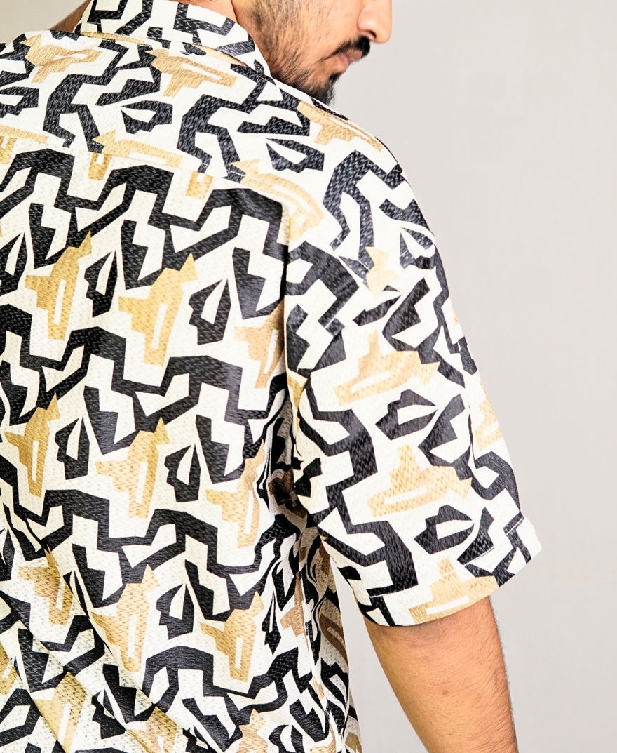 Beige – Retro Abstract | Printed Oversized Half Sleeves Shirt by Cloox
