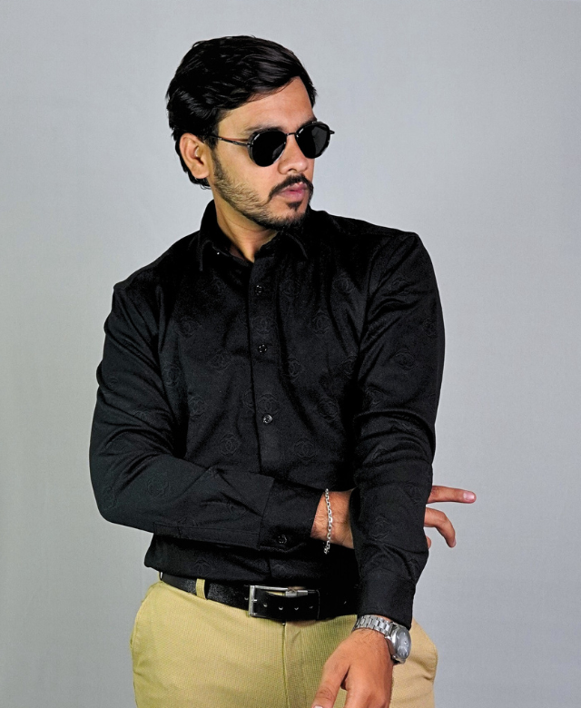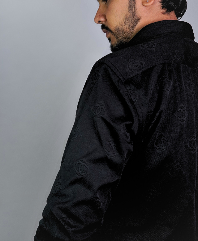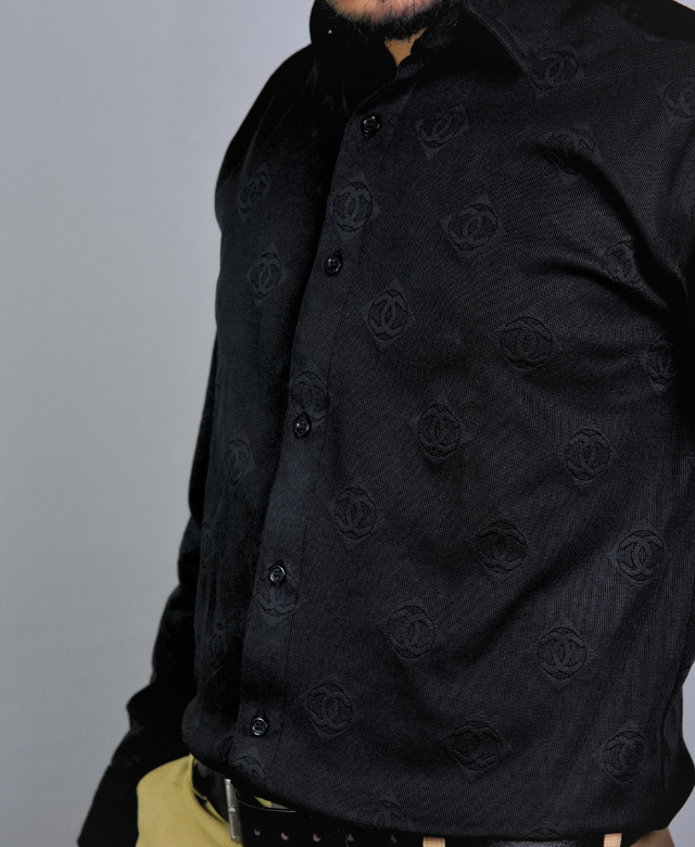 The black color offers a strong and elegant vibe, perfect for pairing with both light and dark bottoms. The embossed pattern gives the shirt a subtle luxury feel, making it stand out without being flashy. It’s the ideal choice when you want to look sharp and feel great.