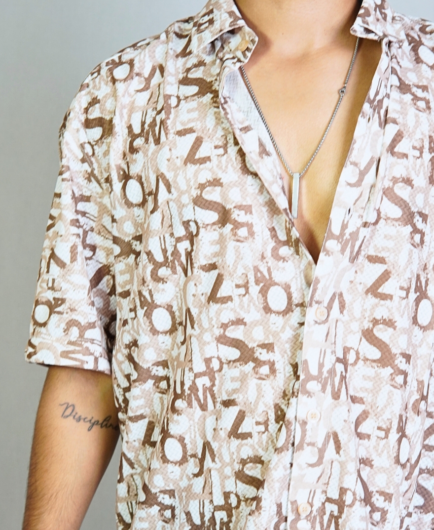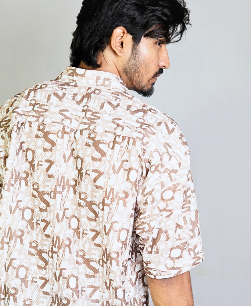 No More Basic Shirts! Stay bold and comfy with the Cloox Brown Oversized Shirt, featuring a unique alphabets print and half sleeves. Perfect for relaxed, creative everyday looks.
