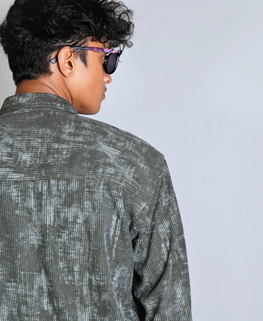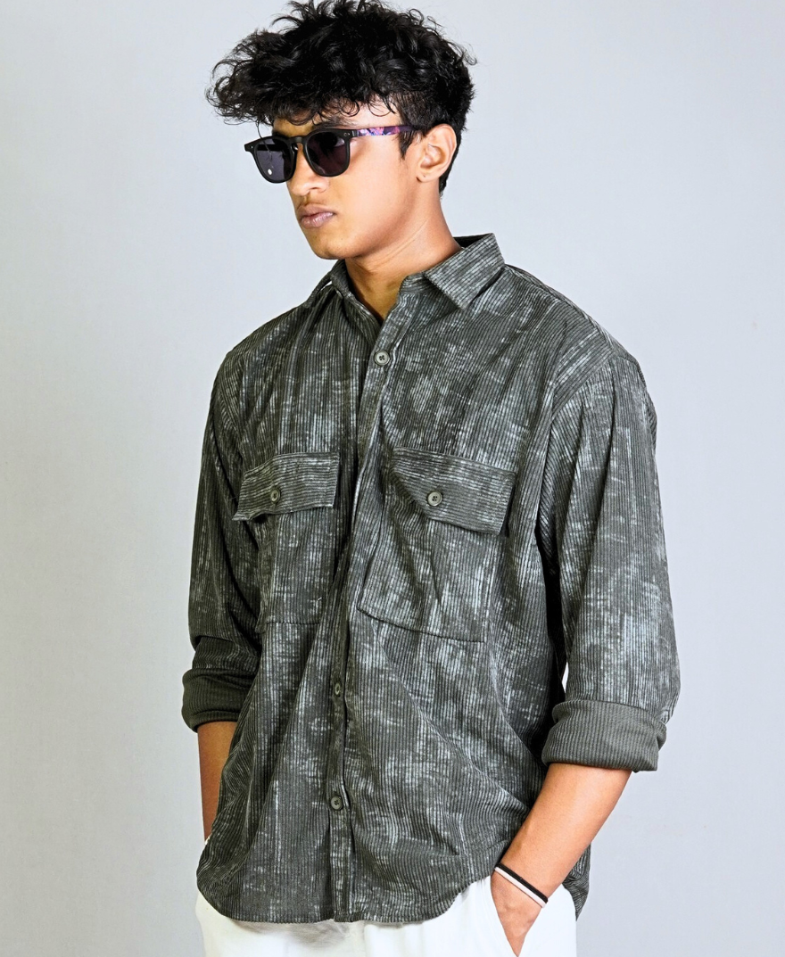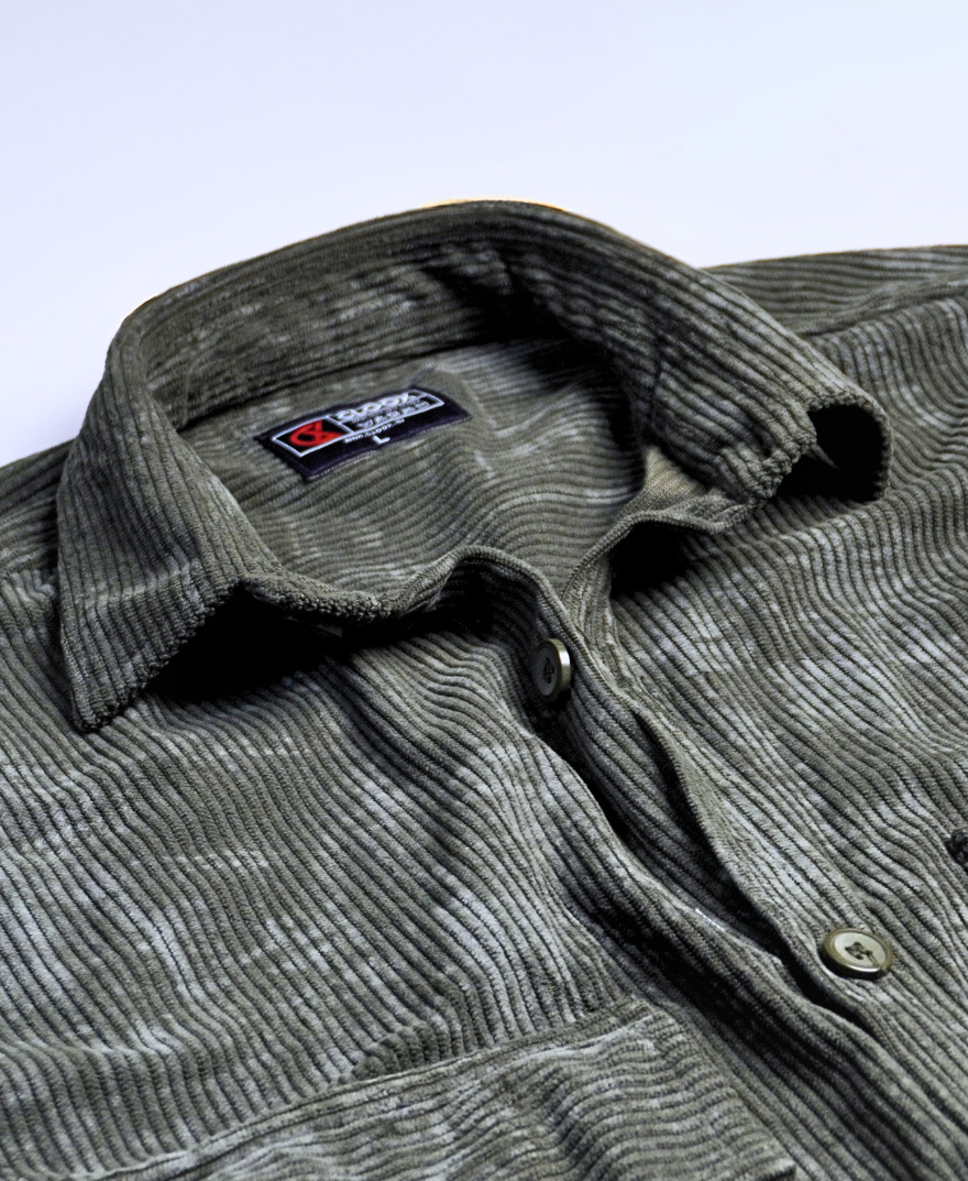 Green – Corduroy | Double Pocket Oversized Full Sleeves Shirt by Cloox