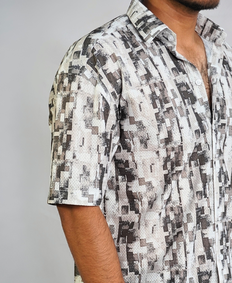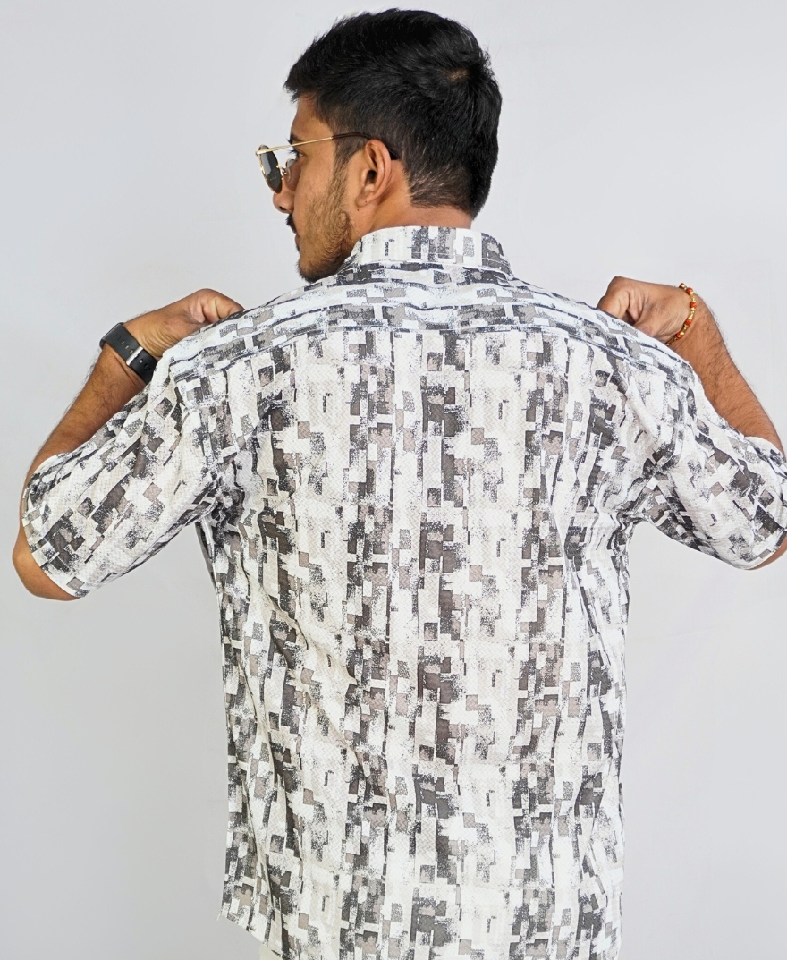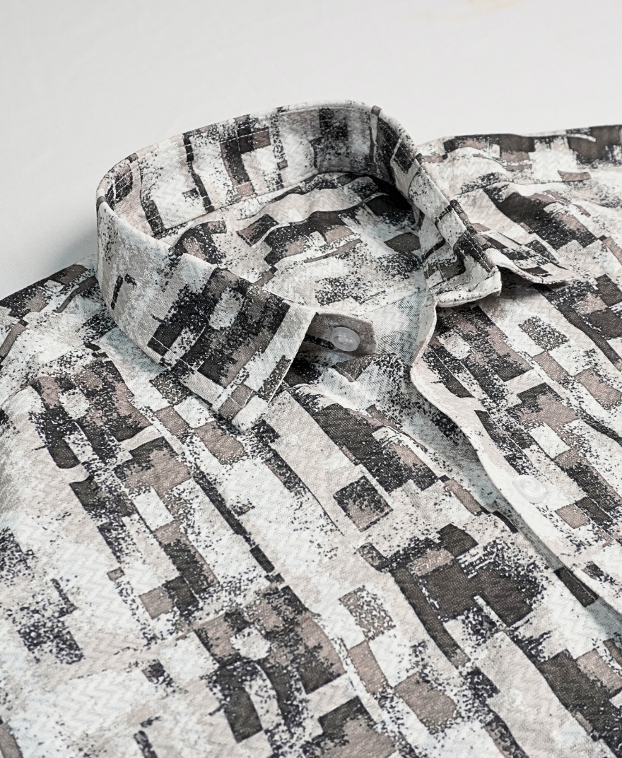 The refreshing grey color brings vibrancy to your wardrobe, while the retro abstract pattern adds a fun and artistic touch. It’s the perfect shirt for anyone who loves playful style with a vintage twist.