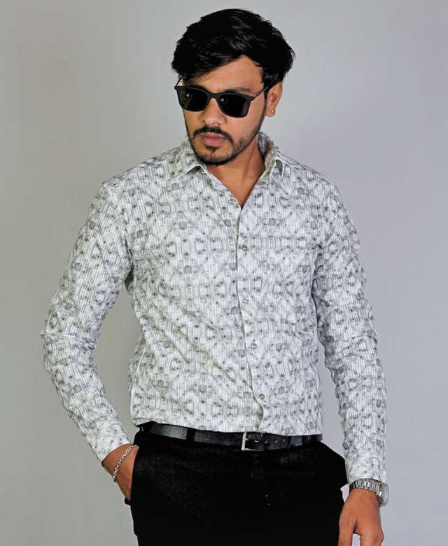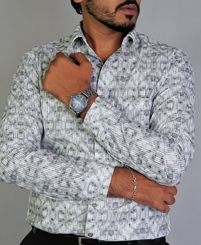Step up your casual style with the Cloox Light Grey Printed Shirt, designed with a modern and eye-catching pixel pattern. This shirt is the perfect mix of simplicity and style, making it ideal for day-to-day wear, casual Fridays, or relaxed evening plans.