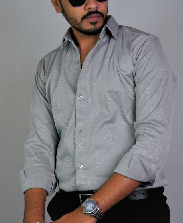 The Light Grey color offers a strong and elegant vibe, perfect for pairing with both light and dark bottoms. The embossed pattern gives the shirt a subtle luxury feel, making it stand out without being flashy. It’s the ideal choice when you want to look sharp and feel great.