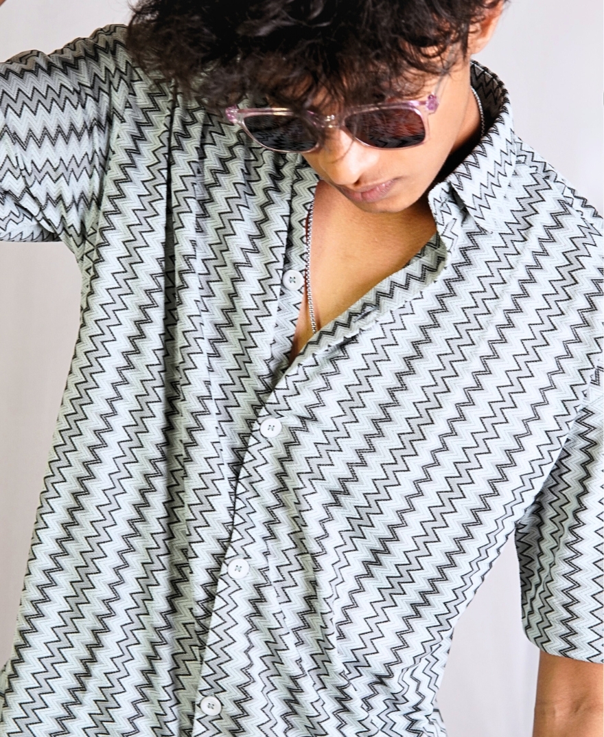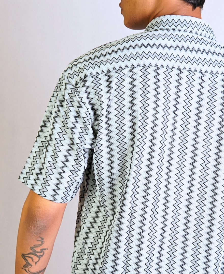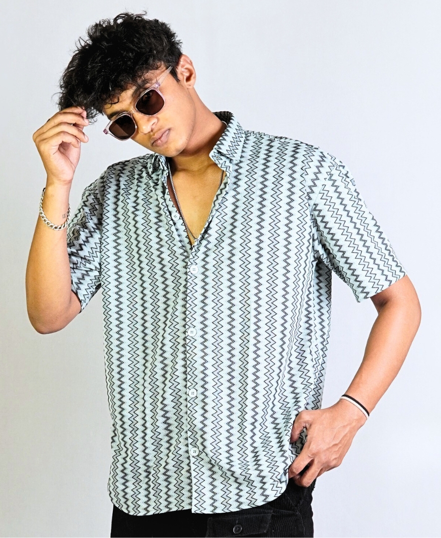 Light Pista – Zigzag Stripes | Textured Half Sleeves Oversized Shirt by Cloox