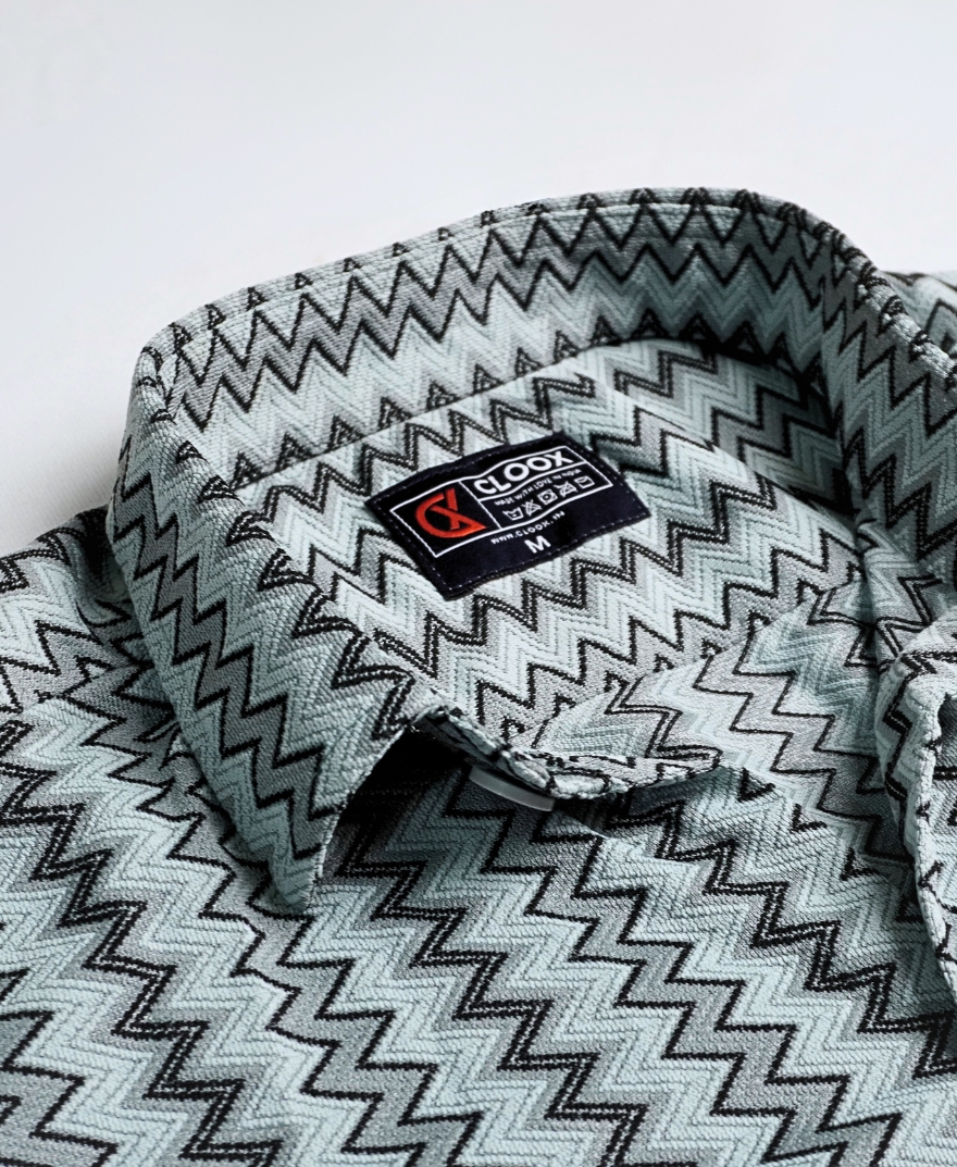 Get ready to look cool and feel comfortable with the Cloox Light Pista Zigzag Stripes Textured Oversized Shirt — where modern design meets everyday wear.