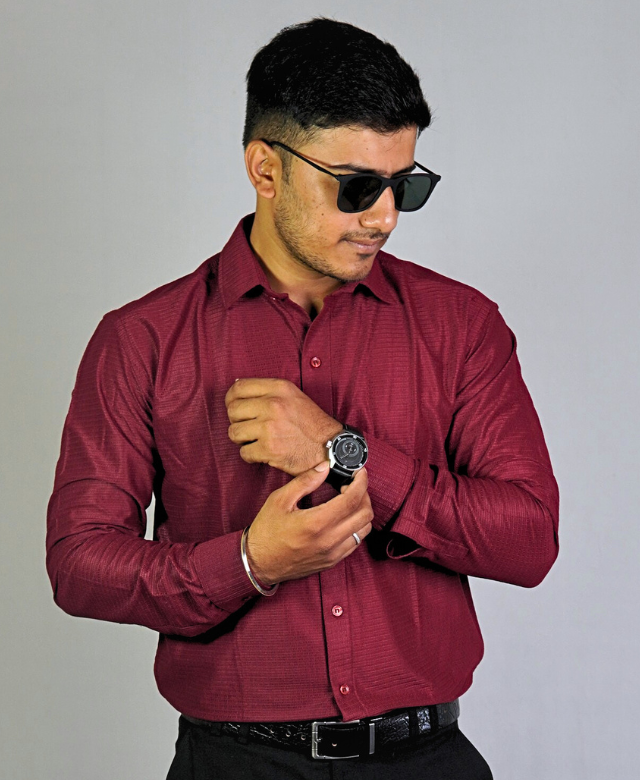 Maroon – Waffle Pattern | Formal Shirt by Cloox
