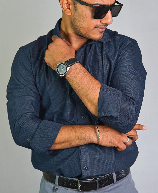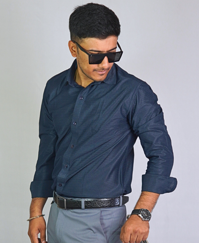 Navy Blue – Waffle Pattern | Formal Shirt by Cloox